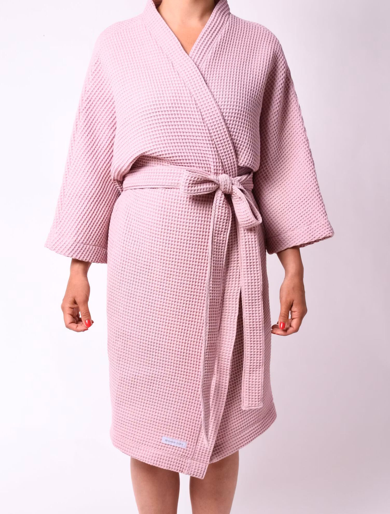 En komfortabel och tidlös badrock i färgen lavendelrosa. Designat i mjuk våffelväv av 100% bomull. Badrocken finns i flera olika storlekar och färger.