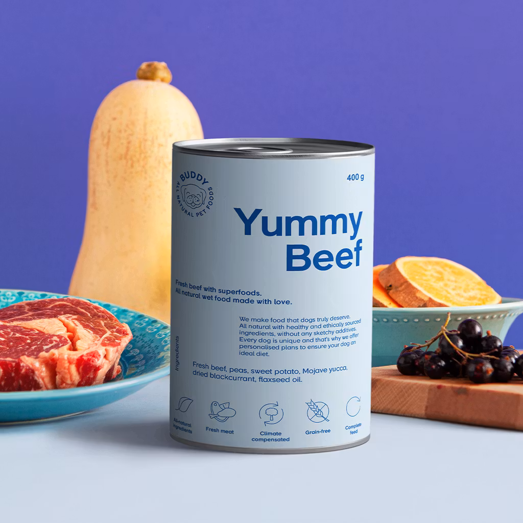 Ett smakrikt och väldoftande helfoder för kräsna vuxna hundar. Med färskt nötkött som huvudingrediens är detta våtfoder rikt på protein, fettsyror, mineraler och vitaminer. Dessutom innehåller receptet sötpotatis, svarta vinbär, yucca och linfröolja till för att helt täcka din hunds fulla näringsbehov. Kan serveras ensamt eller tillsammans med torrfoder.