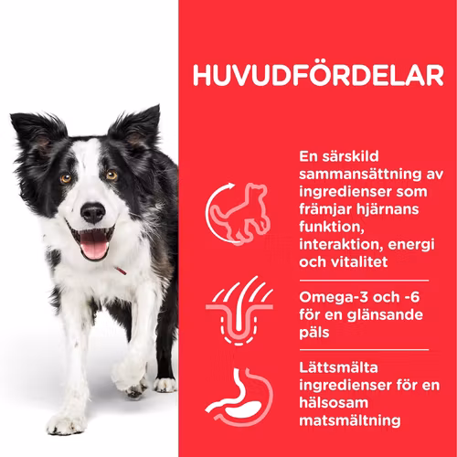 Valpar, dräktiga eller digivande hundar, samt äldre vuxna hundar. Under dräktighet eller digivning bör hundar byta till HILL'S SCIENCE PLAN Puppy foder.