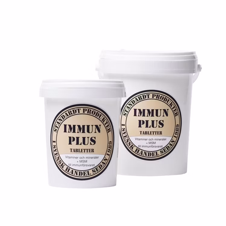 Standardt Immun Plus är ett kosttillskott för hund och katt med mycket högt näringsinnehåll av vitaminer, mineraler, spårämnen och MSM (ca 35%). Kroppen behöver en ständig tillförsel av stärkande näringsämnen. Detta bidrar till att näringssystemet är förberett för olika påfrestningar.