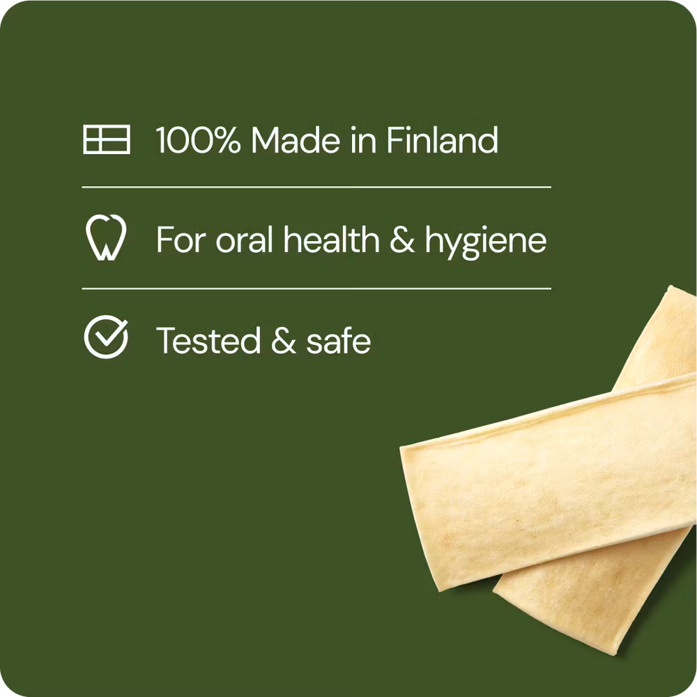 Den äkta och ursprungliga produkten med den finska kvalitetsbeteckningen Nyckelflaggan!Kom ihåg att hålla uppsikt över din hund när den tuggar på tuggben och att se till att den alltid har tillgång till friskt vatten.