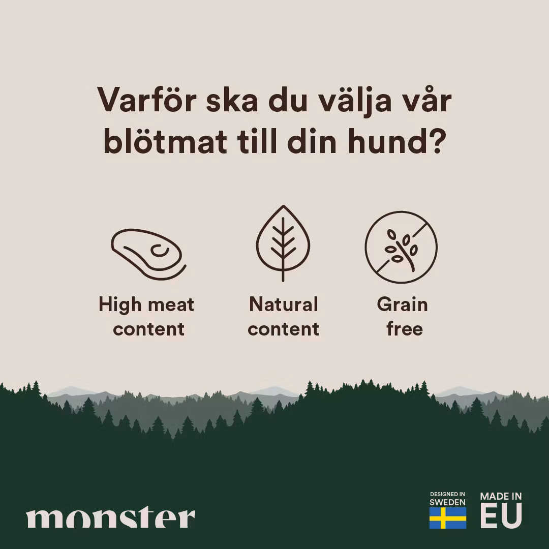 Komplett måltid eller bara lite guldkant på vardagen. Det bestämmer du (och din hund). Perfekt för arbetande hundar.