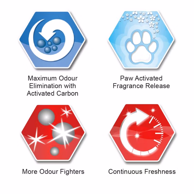 - Packad med extra odörbekämpare som kan hantera kattlådor som utsätts för hög användning i hushåll med flera katter.
