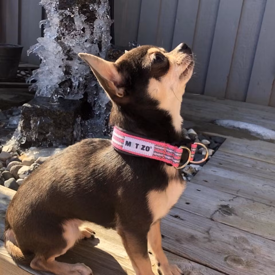 För att hitta rätt storlek så mäter ni hundens omkrets kring halsen, måtten som vi anger nedan är i inspänt läge.