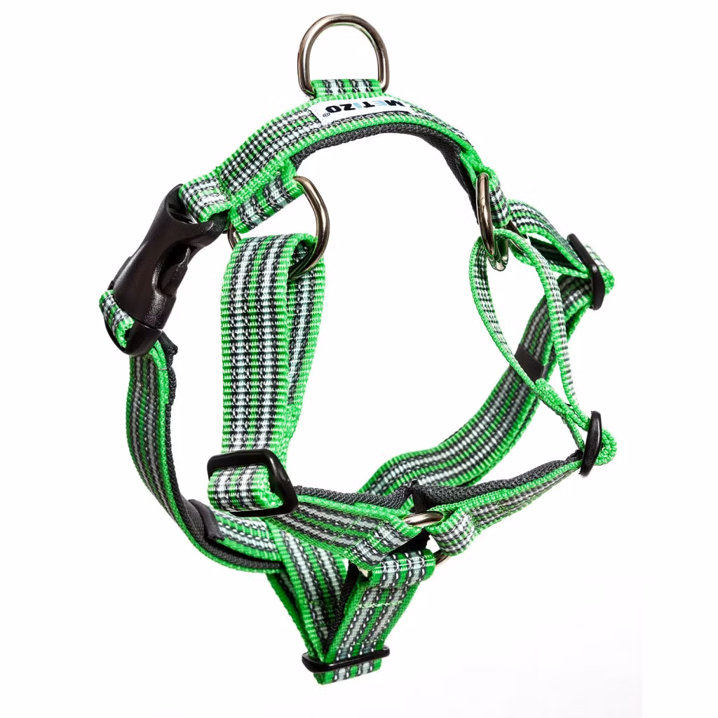 Metizoselen är framtagen med en ergonomisk utformning så att den inte skall belasta hundens känsliga nack- & ryggkotor. Hunden har helt fria luft- och andningsvägar då selen inte trycker över hundens hals. Hunden har full rörelsefrihet i denna sele. De mjuka remmarna är justerbara. Metizoselen är till största delen fodrad. Spännet sitter vid sidan av hunden för att inte ge skav eller på annat sätt irritera hunden.