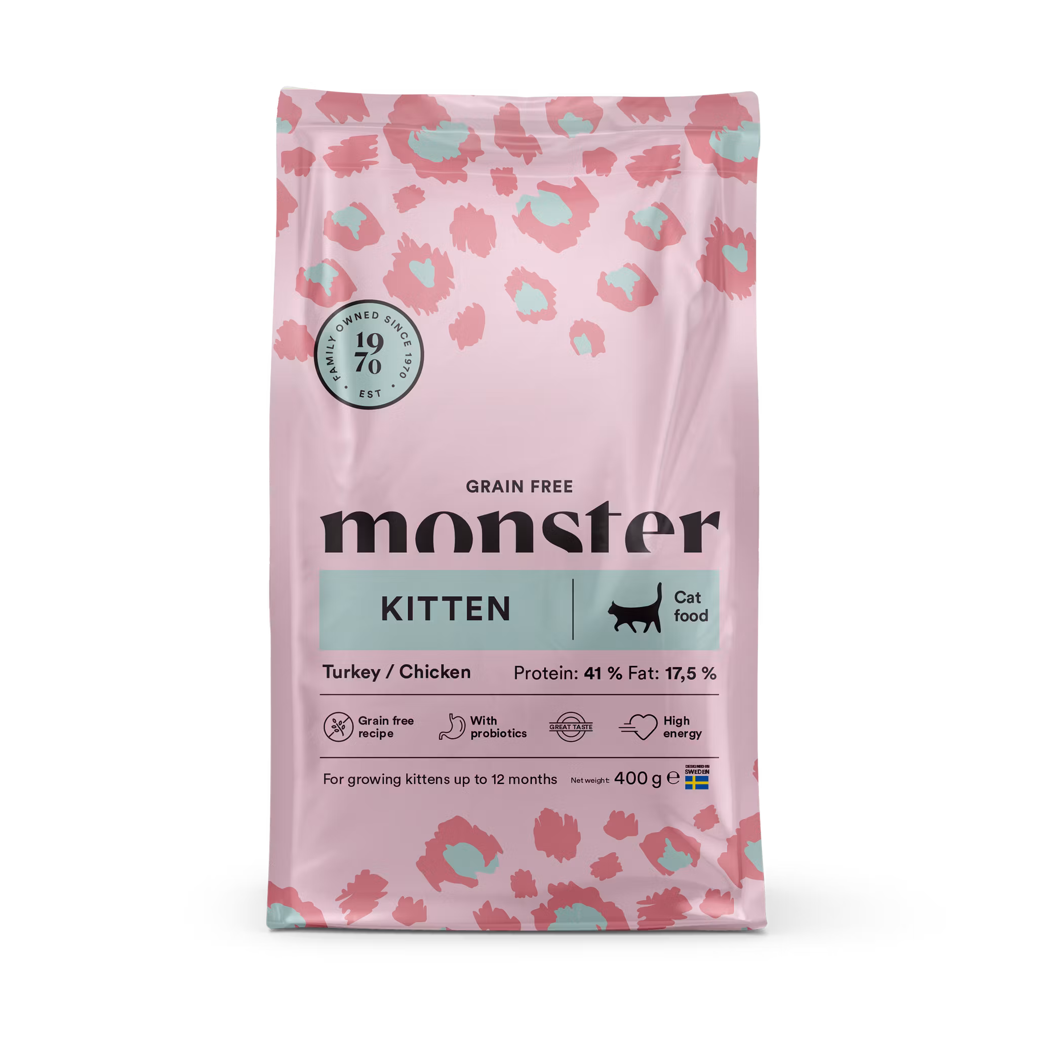 Vilse i foderdjungeln? Här kommer några tips att hålla utkik efter: mycket kött (av god kvalitet!), högt energivärde och recept som är snällt mot den lilla magen. Så bör det också smaka gott. Behöver vi säga att Monster Grain Free Kitten innehåller allt det?