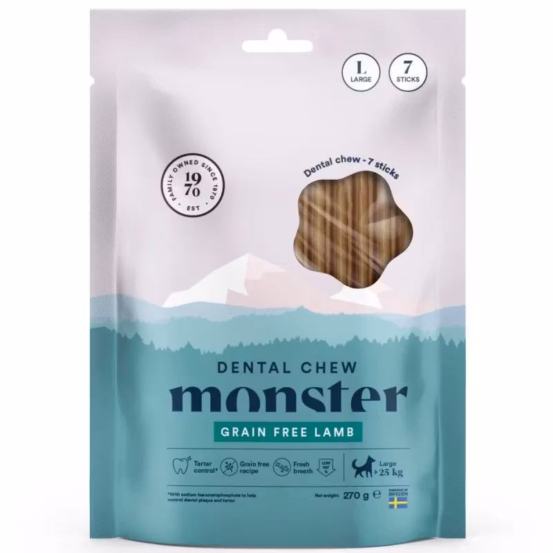 Monster Dog Dental Chew Grain free Lamb. S, M & L. 7 pack. Spannmålsfritt, lamm