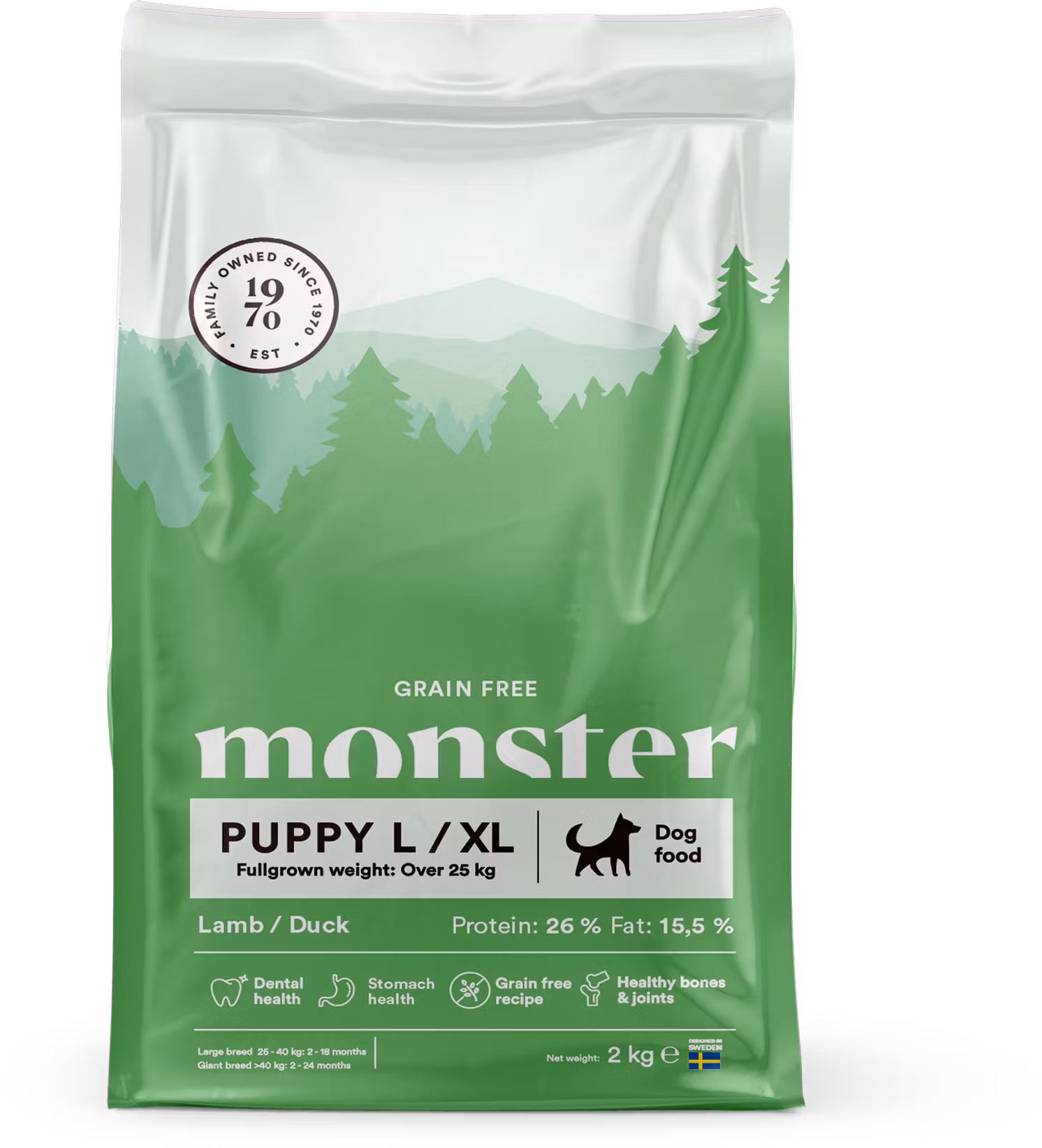Stor valp - mer att älska! Men kan man visa kärlek genom hundmat? Absolut säger vi! Vår valpmat är spannmålsfri och rik på kött. Bidrar till sund mage, är bra för hjärnans utveckling och ser till att din valp växer i lagom takt. Omtanke i form av knapriga foderkulor. Förpackat i en fin påse. Är inte det kärlek så säg?