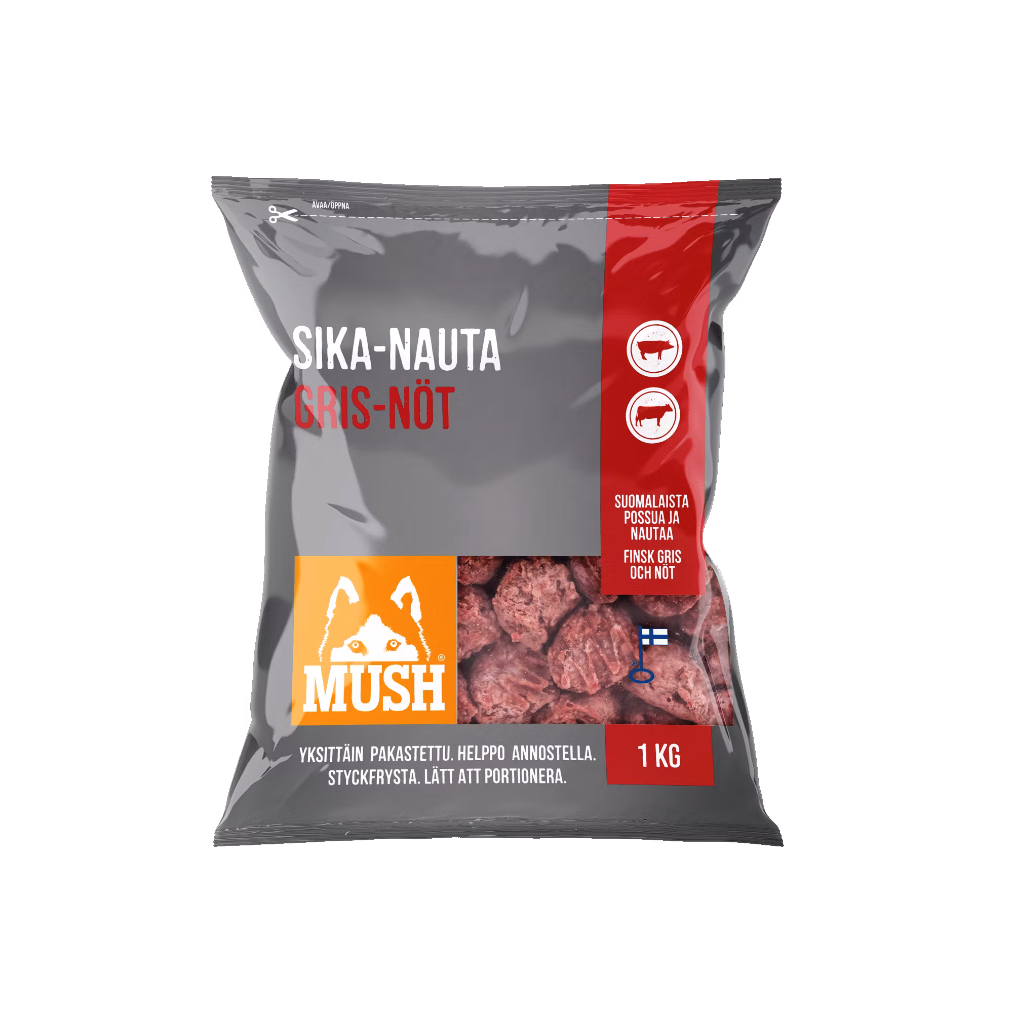 MUSH B.A.R.F. Basic® Gris-Nöt- Fryst kompletteringsfoder 1 kg SKICKAS EJ!