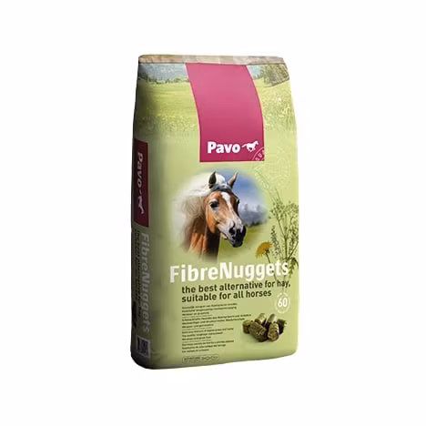Produkten är rik på fibrer och är helt fri från spannmål, melass och andra (socker)tillsatser. Innehållet av socker och stärkelse är mycket lågt, vilket gör att Pavo FibreNuggets passar även för hästar och ponnyer som är känsliga för socker och spannmål. Pavo FibreNuggets har en mycket jämn kvalitet och är dammfria tack vare en kontrollerad torkningsprocess. Detta gör dem till ett utmärkt tillskott för hästar som är känsliga för damm.