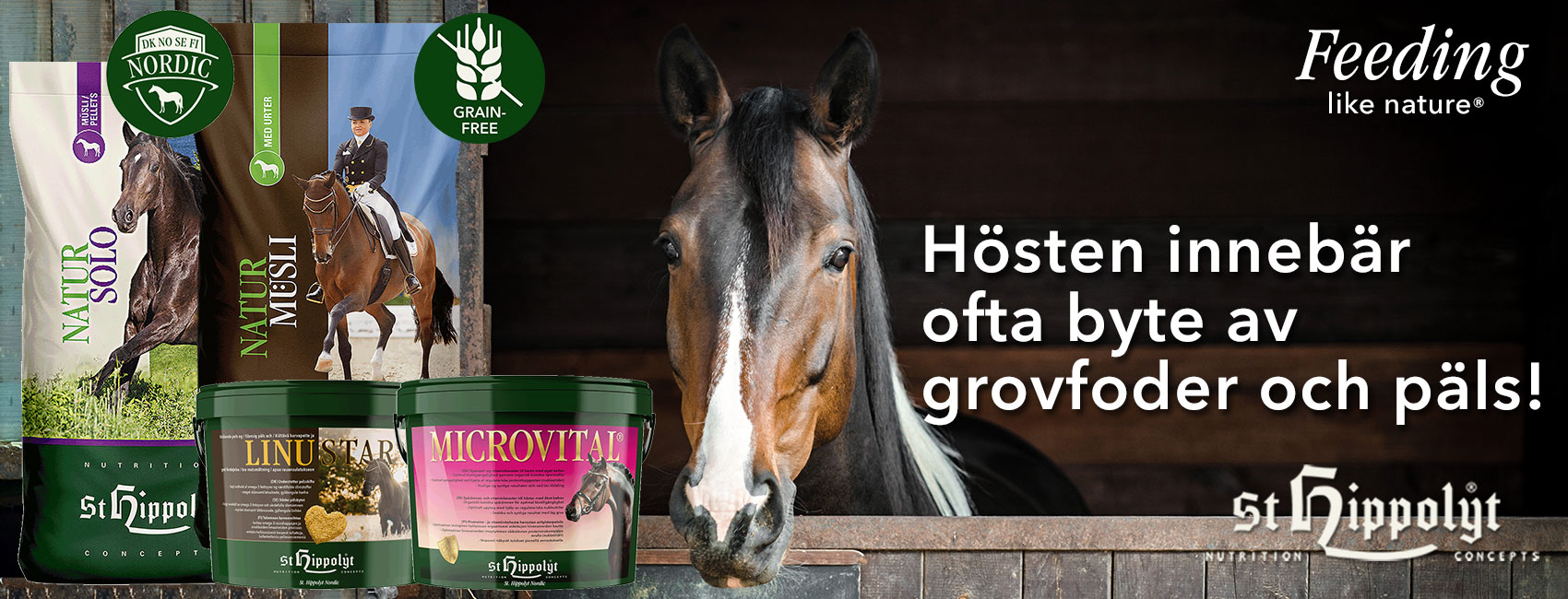 St Hippolyts produkter är mycket mer än bara foder. Det är ett helt koncept med naturliga näringskällor, för hästens alla behov, hälsa och hållbarhet. Alla produkter är utvecklade med naturen som förebild tillsammans med den senaste vetenskapen kring hästar och utfodring.